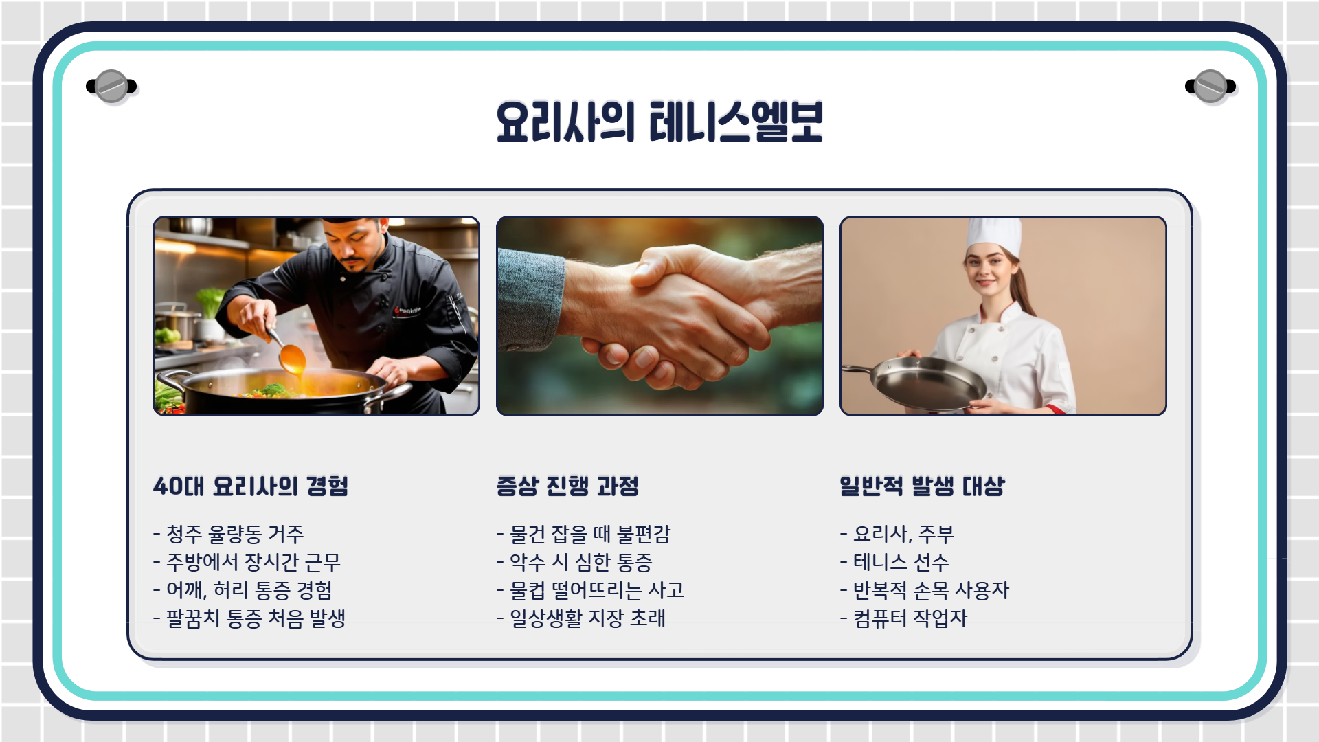 요리사의 손끝에서 시작된 통증, 팔꿈치까지 번지다